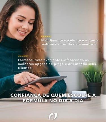 A satisfação de quem confia na A Fórmula é o que nos move. Unimos o rigor técnico das nossas farmacêuticas a um atendimento humano e ágil, garantindo que você receba o cuidado exato que a sua saúde e beleza precisam